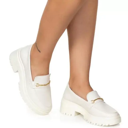 Mocassim Feminino Tratorado Sapato Conforto Moderno Estilo Shoes - Off White